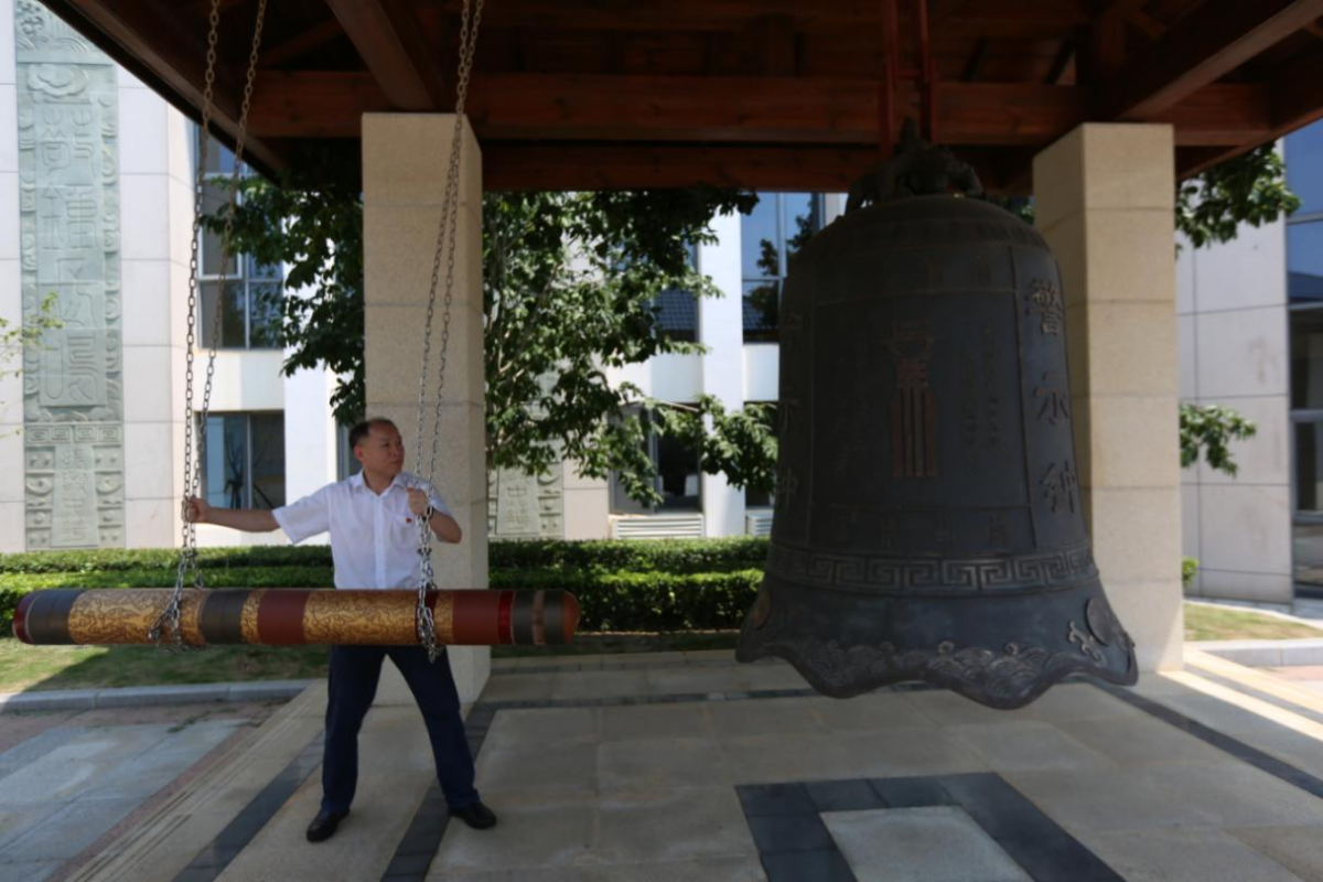 在廉政文化廣場,黨員干部面向警示鐘莊嚴肅立,黨支部書記、總經理王峰敲響了“警示鐘”,三記振聾發聵的鐘鳴警示同志們要時刻把穩思想之舵,緊繃紀律之弦。